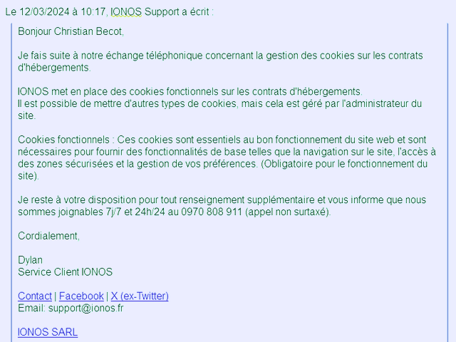 . Les services informatiques et les navigateurs de l'ordinateur échangent des données pour pouvoir gérer la navigation de l'internaute. Ce sont les cookies techniques nécessaires. Ces cookies peuvent servir à générer des statistiques mais n'établissent pas de profil ou des critères personnalisant l'internaute. . Les cookies internes ne peuvent être créés et visualisés que par l'opérateur du site visité , votre prestataire informatique ou par le navigateur de votre propre ordinateur. Selon votre configuration de paramètres, certains sont conservés. Ces